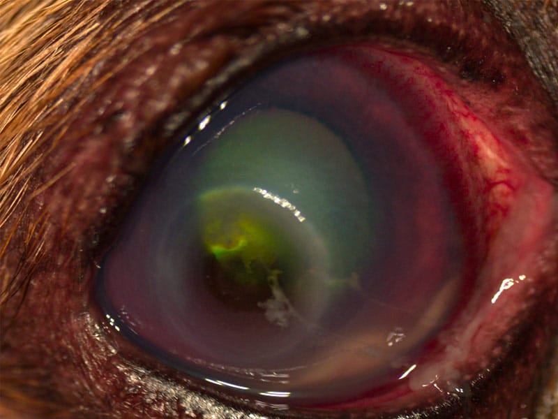 Por el contrario, los síntomas de uveítis perros son mucho más evidentes y a menudo doloroso. Es común que presenten lagrimeo excesivo, enrojecimiento ocular y cierre del ojo afectado.